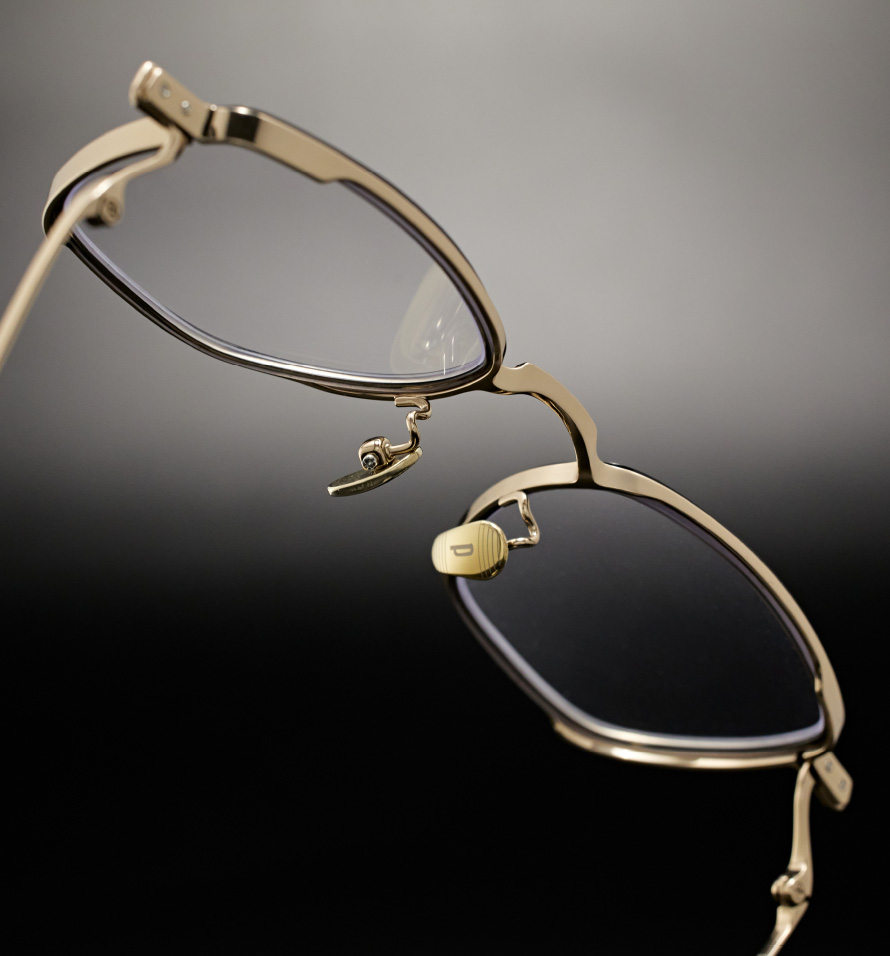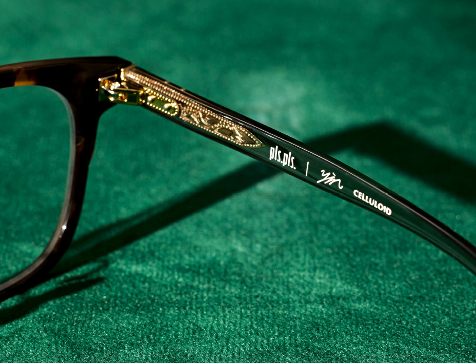 賽璐珞 Celluloid 膠框 鏡框主體選用高密度賽璐珞材質,其色澤溫潤、層次深邃。 賽璐珞具備極佳的可加工性與結構穩定度,以手工拋光賽璐珞圈面,可刻畫出銳利而清晰的邊緣線條,讓鏡框輪廓在光影中更加立體鮮明。 它也是唯一能實現本次特殊結構鏡腳設計的關鍵材料。 這不是為了復古,而是為了精準。