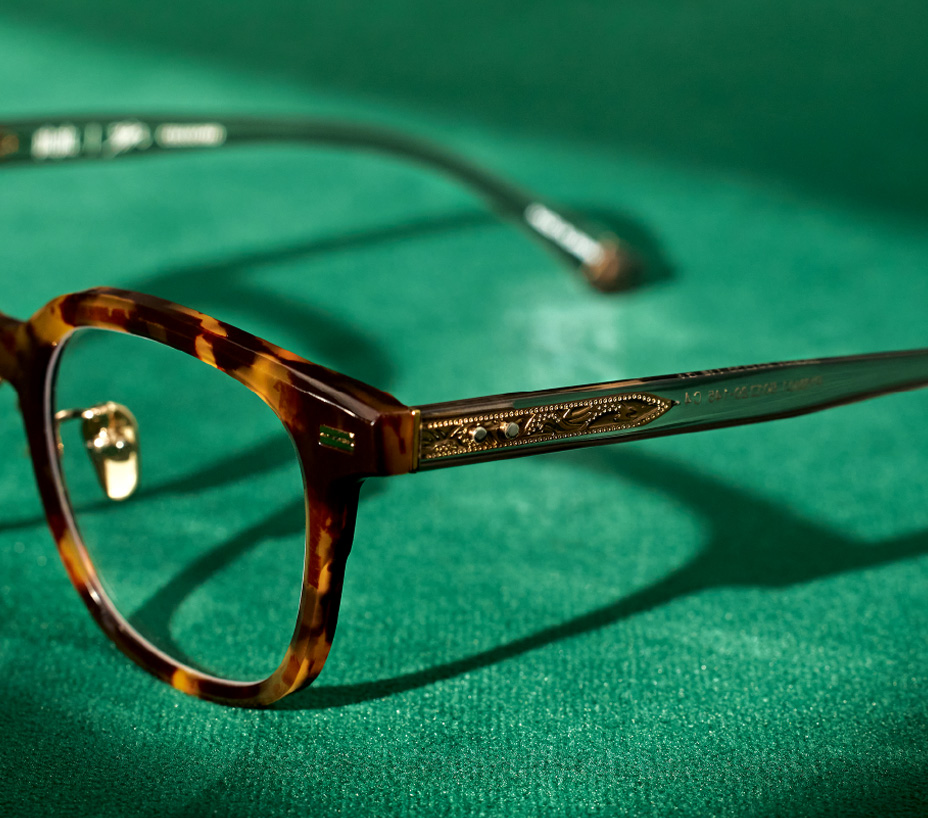賽璐珞 Celluloid 膠框 鏡框主體選用高密度賽璐珞材質,其色澤溫潤、層次深邃。 賽璐珞具備極佳的可加工性與結構穩定度,以手工拋光賽璐珞圈面,可刻畫出銳利而清晰的邊緣線條,讓鏡框輪廓在光影中更加立體鮮明。 它也是唯一能實現本次特殊結構鏡腳設計的關鍵材料。 這不是為了復古,而是為了精準。